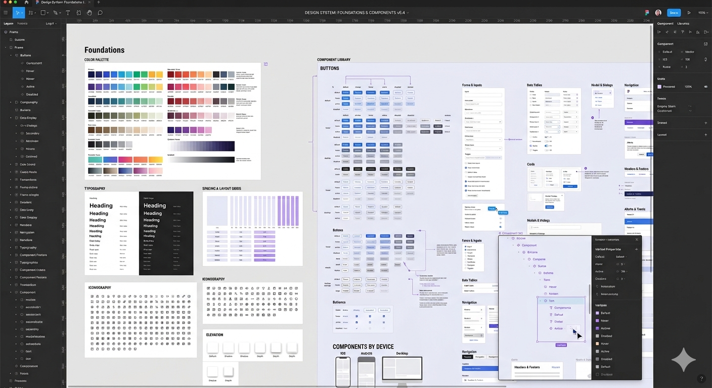 In Figma, I work in layers. Local styles and variables come first, covering color, typography, spacing, and border radius. These are the raw values that everything else references. From there, I build semantic groupings: which color is an action color, which is a feedback color, which is purely decorative. Naming these clearly is not a formality. It is the difference between a system a collaborator can read and one they have to decode.